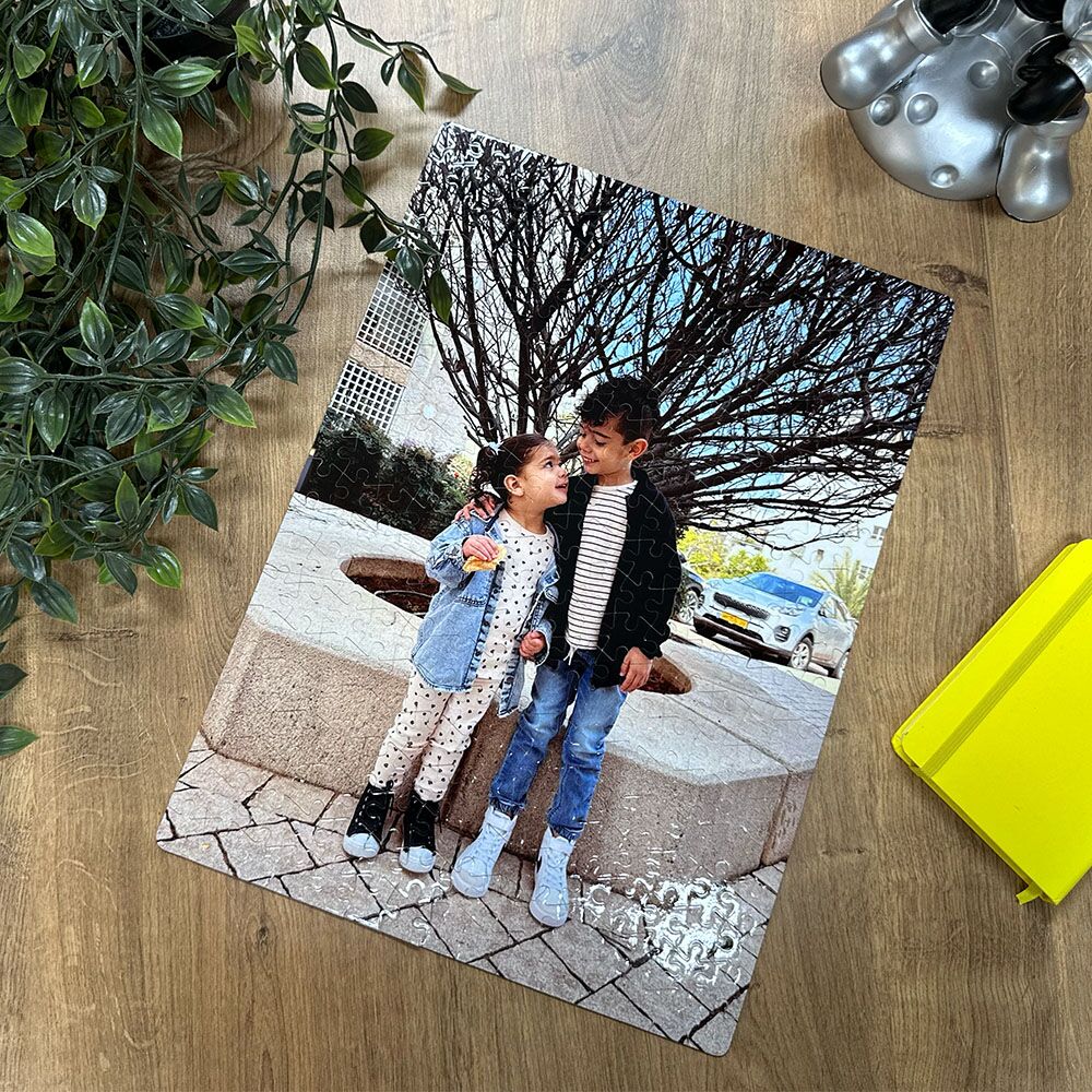 חדש במגוון – פאזל 300 חלקים עם הדפסה בהתאמה אישית, גודל הפאזל 38 על 28 ס״מ. עצבו בעצמכם בתוכנת העיצוב שלנו ללא הגבלת תמונות וקבלו את הפאזל מפורק בתוך קופסא מיוחדת !