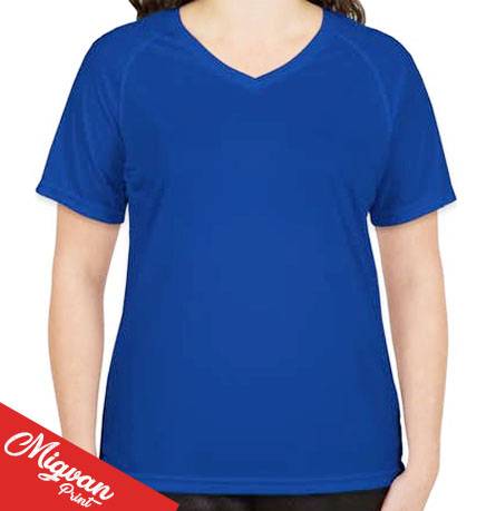 חולצות דרייפיט מעולות באיכות גבוהה עם הדפסה בצד אחד או שתיים. 100% פוליאסטר מנדפות זיעה. צווארון וי בגזרת נשים