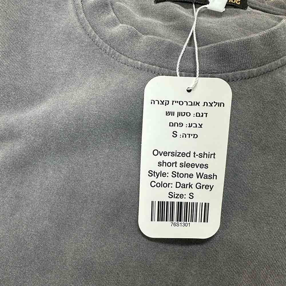 - גזרה: צווארון עגול שרוול קצר גזרת גברים גזרת אוברסייז דגם סטון ווש