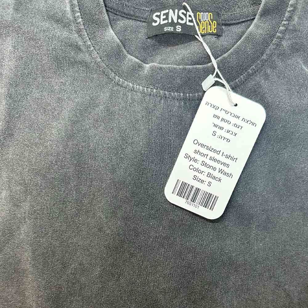 חולצת אוברסייז דגם סטון ווש מותג Sense [הדפסה על צד אחד]