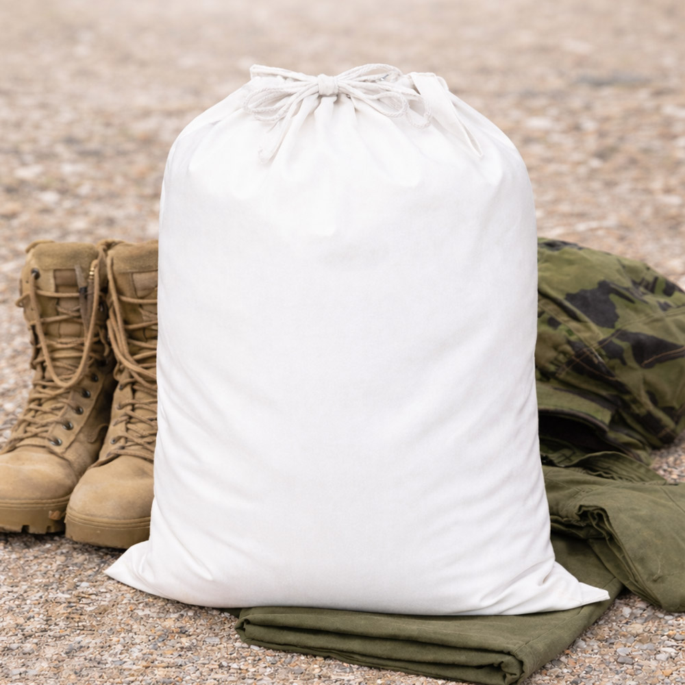השק עשוי מבד איכותי ועמיד במיוחד, מתאים לשימוש יומיומי בצבא ומגיע עם סגירת שרוך נוחה וחזקה. הוא גדול ומרווח כך שאפשר לאחסן בו כביסה במהלך השבוע עד החזרה הביתה.