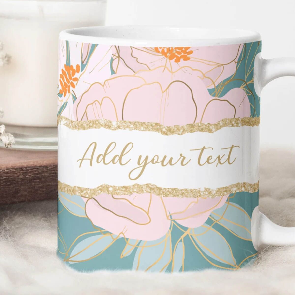 ספל מעוצב Floral Mug – רשמו את הטקסט שלכם לספל ואנו נשלח לכם סקיצה לספל מושלם למתנה לכל אחד!