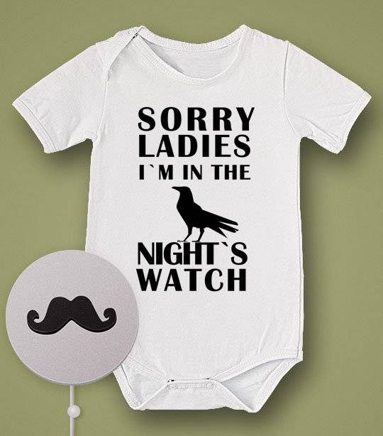 אוברול לתינוק מודפס "nights watch" בהשראת משחקי הכס לתינוקות שאסור להם לצאת לדייט עם תינוקות אחרים 🙂 בגד תינוק 100 אחוז כותנה.