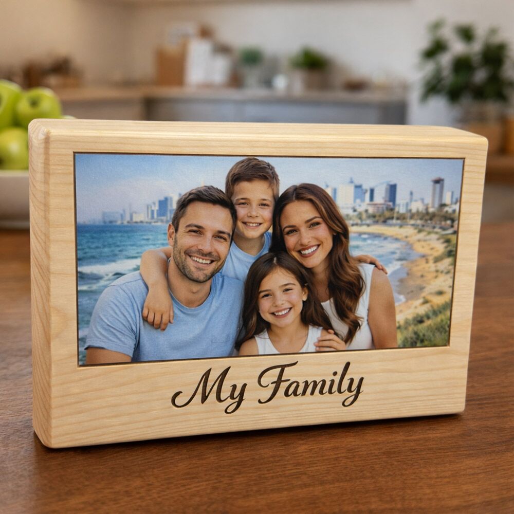 *LoveBlock* בלוק עץ עם תמונה אישית וחריטה בלייזר | מתנה מרגשת בעיצוב עצמי