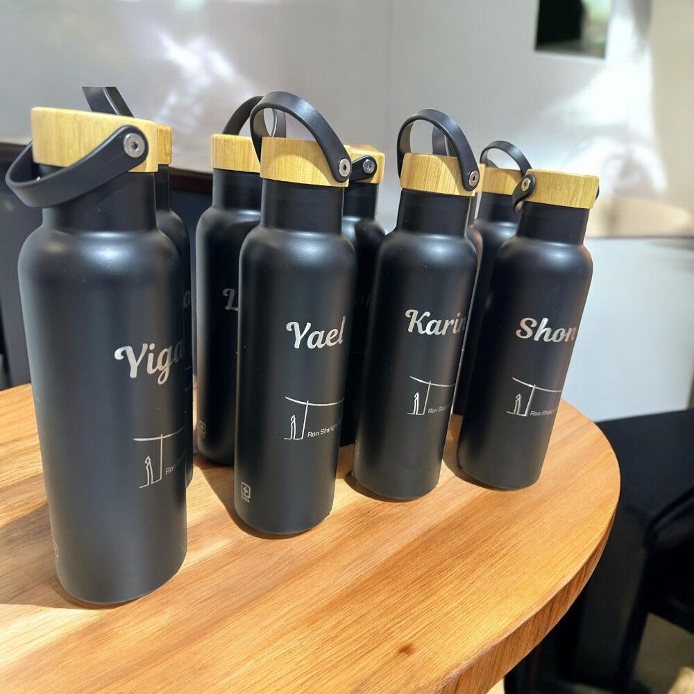 בקבוק טרמי שחור יוקרתי עם חריטת לייזר כסופה ✨