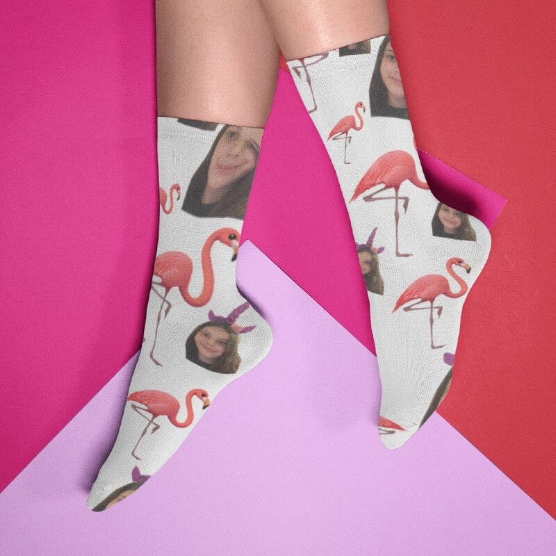 עצבו בעצמכם או תנו לנו לעצב עבורכם גרביים פלמינגו מדליקות 🙂 הפרצוף שלכם על הגרביים המגניבות שלנו! פלמינגו זה מגניב!