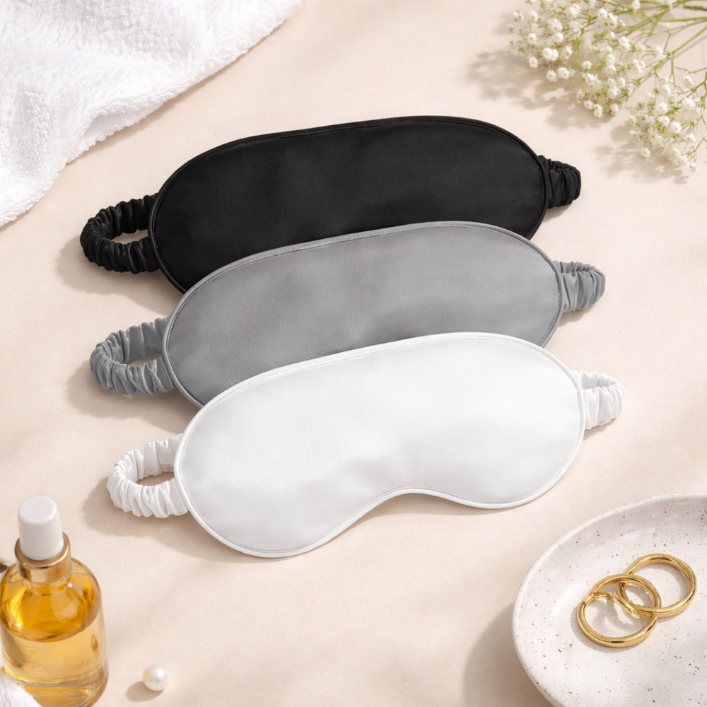 הכיסוי עשוי בד סאטן רך ונעים למגע, עם סרט גומי אלסטי וגמיש המתאים את עצמו בנוחות לכל היקף ראש, מבלי ללחוץ או להפריע בזמן השינה. המבנה המעוגל יושב בעדינות על הפנים ומעניק תחושת רכות מושלמת.