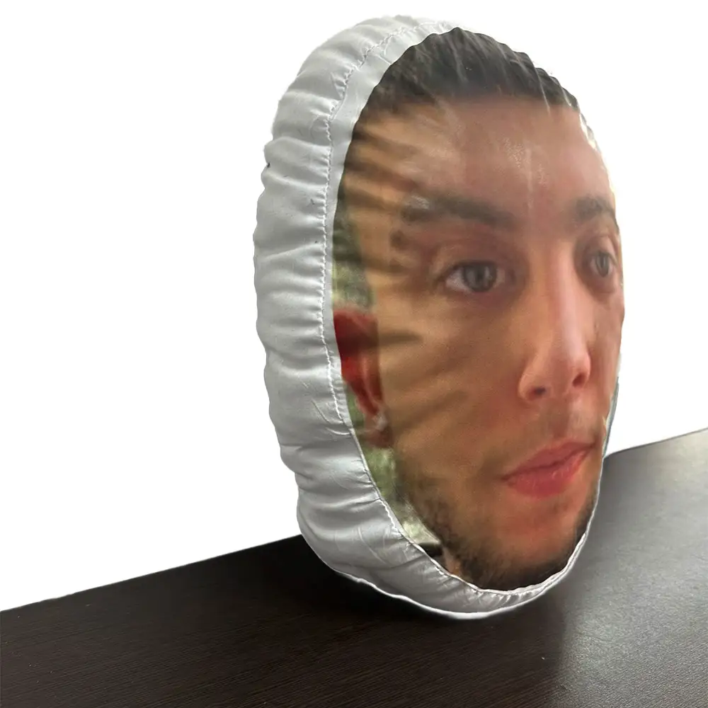 כרית בגודל 25 על 30 ס"מ מעוגלת עם הדפסה של הפרצוף שאתה שולח לנו! כרית מצחיקה בתור מתנה, אפשר להניח על הספה או על הכורסא.