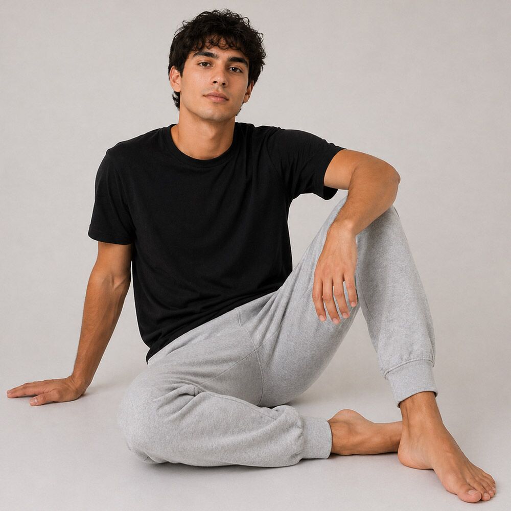 👉 חולצה בצבע שחור מגיעה עם מכנס אפור מלאנג׳
