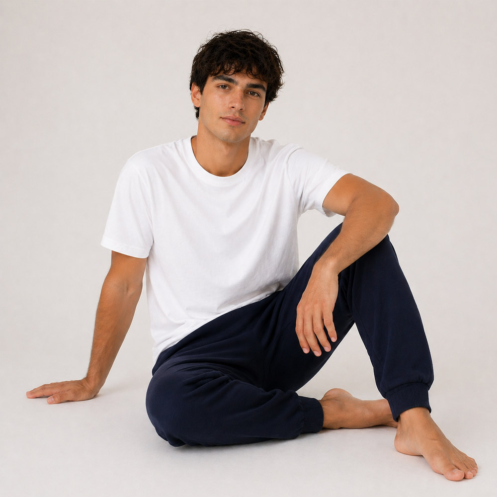 👉 חולצה בצבע לבן מגיעה עם מכנס כחול נייבי