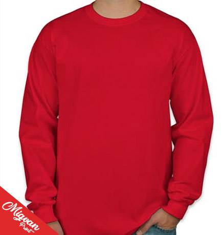 חולצות מעולות 170/150 גרם כותנה 100% באיכות גבוהה עם הדפסה בצד אחד או שתיים. צווארון עגול לגברים בשרוול ארוך.