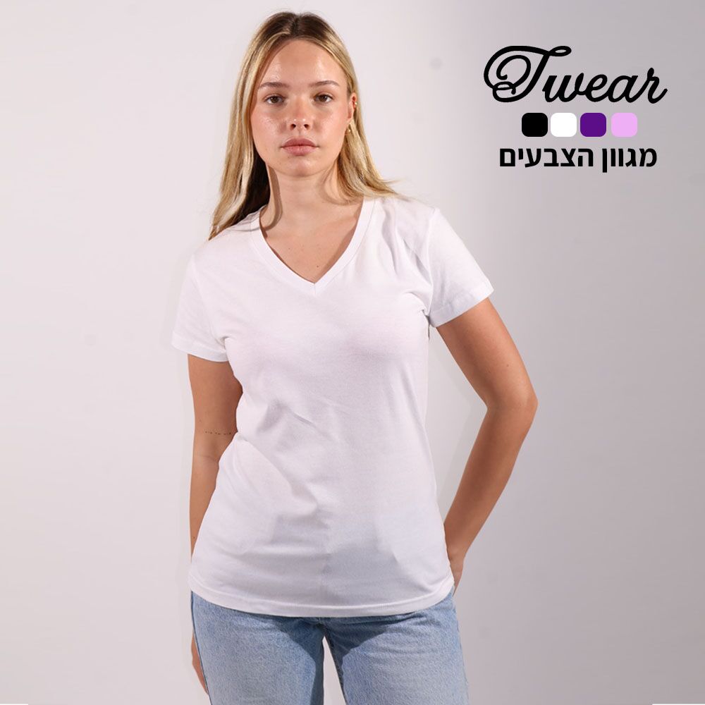 (4 חוות דעת לקוח) חולצת כותנה בגזרת נשים וי איכותית T-Wear [הדפסה על צד אחד]