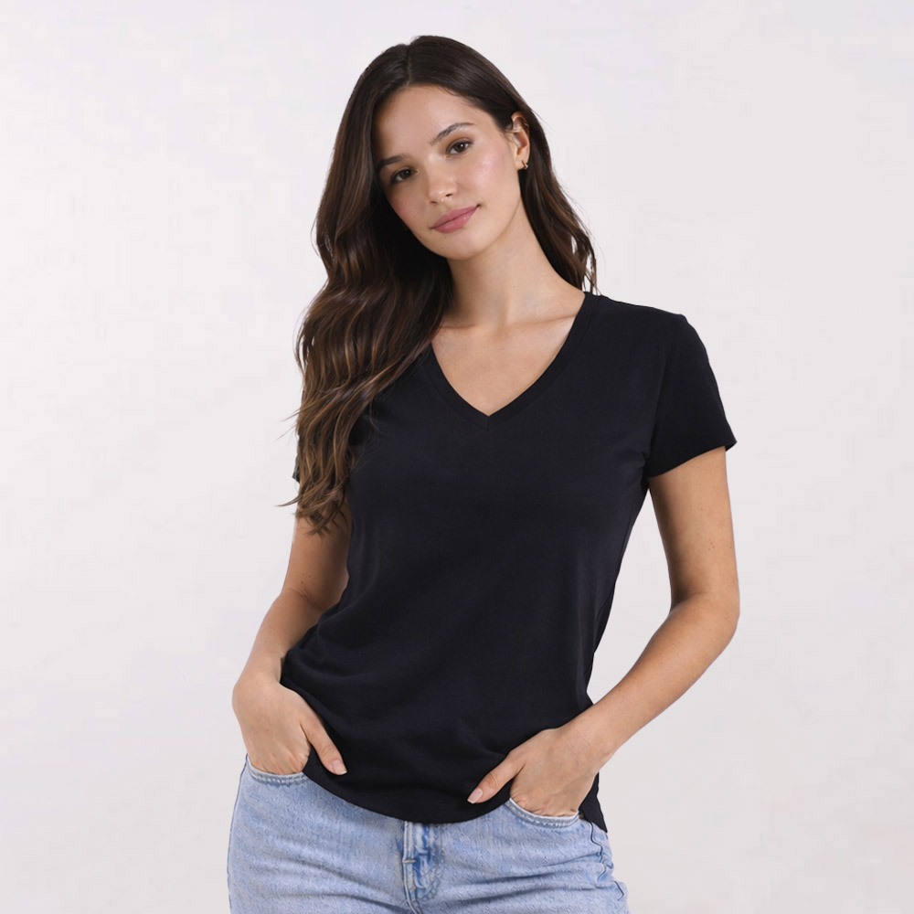 חולצת כותנה בגזרת נשים וי איכותית T-Wear [הדפסה על צד אחד]