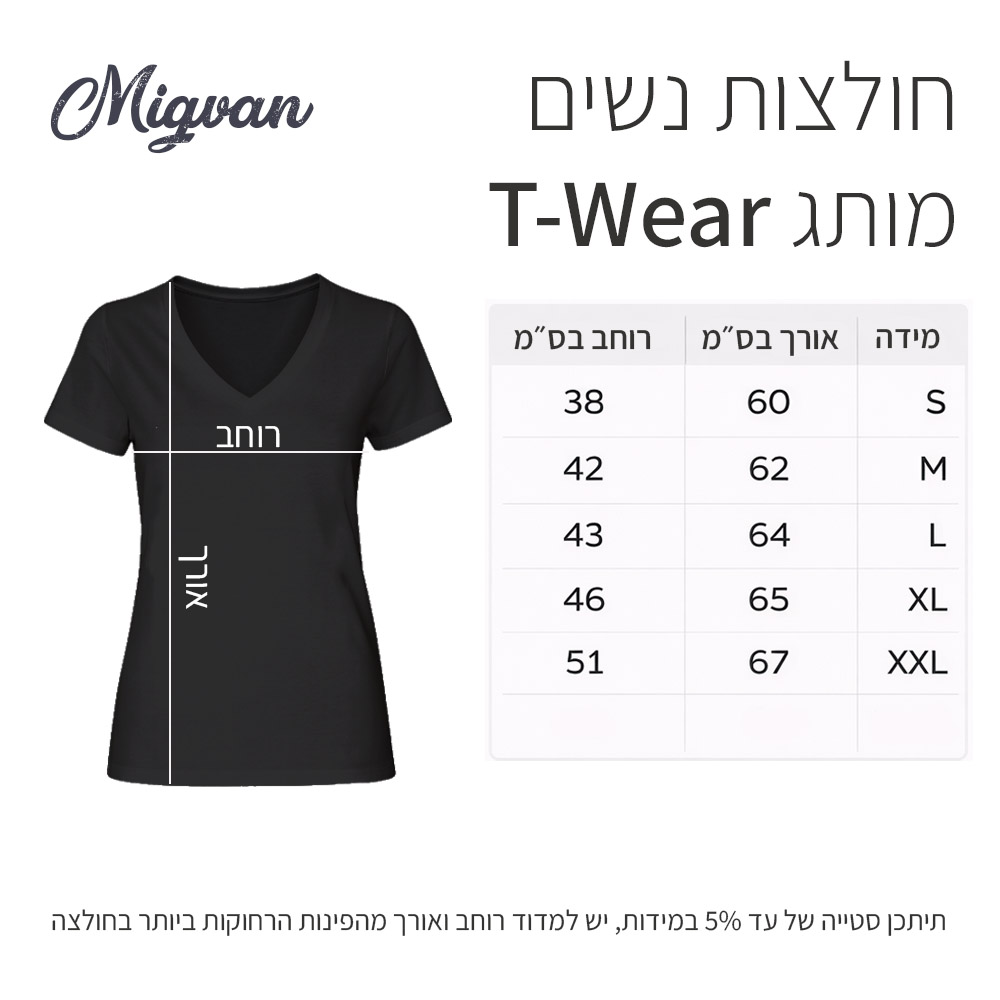 - טבלת מידות: למידע על מידות החולצות לפי סנטימטרים לחץ כאן