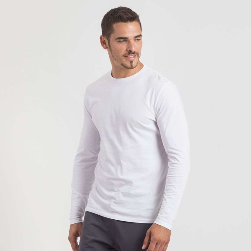 חולצת כותנה בצבע לבן לגברים צווארון עגול שרוול ארוך [ מותג – Hanes ]