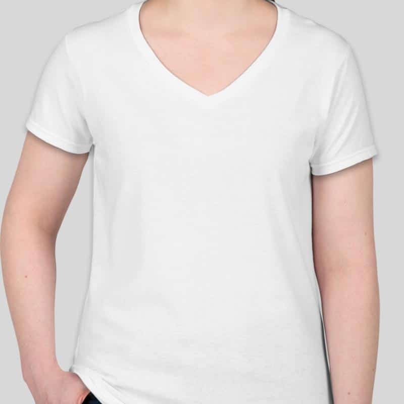 חולצת כותנה גזרת נשים צווארון וי צבע לבן [דפוס טרנספר] חולצת כותנה גזרת נשים צווארון וי צבע לבן [דפוס טרנספר]