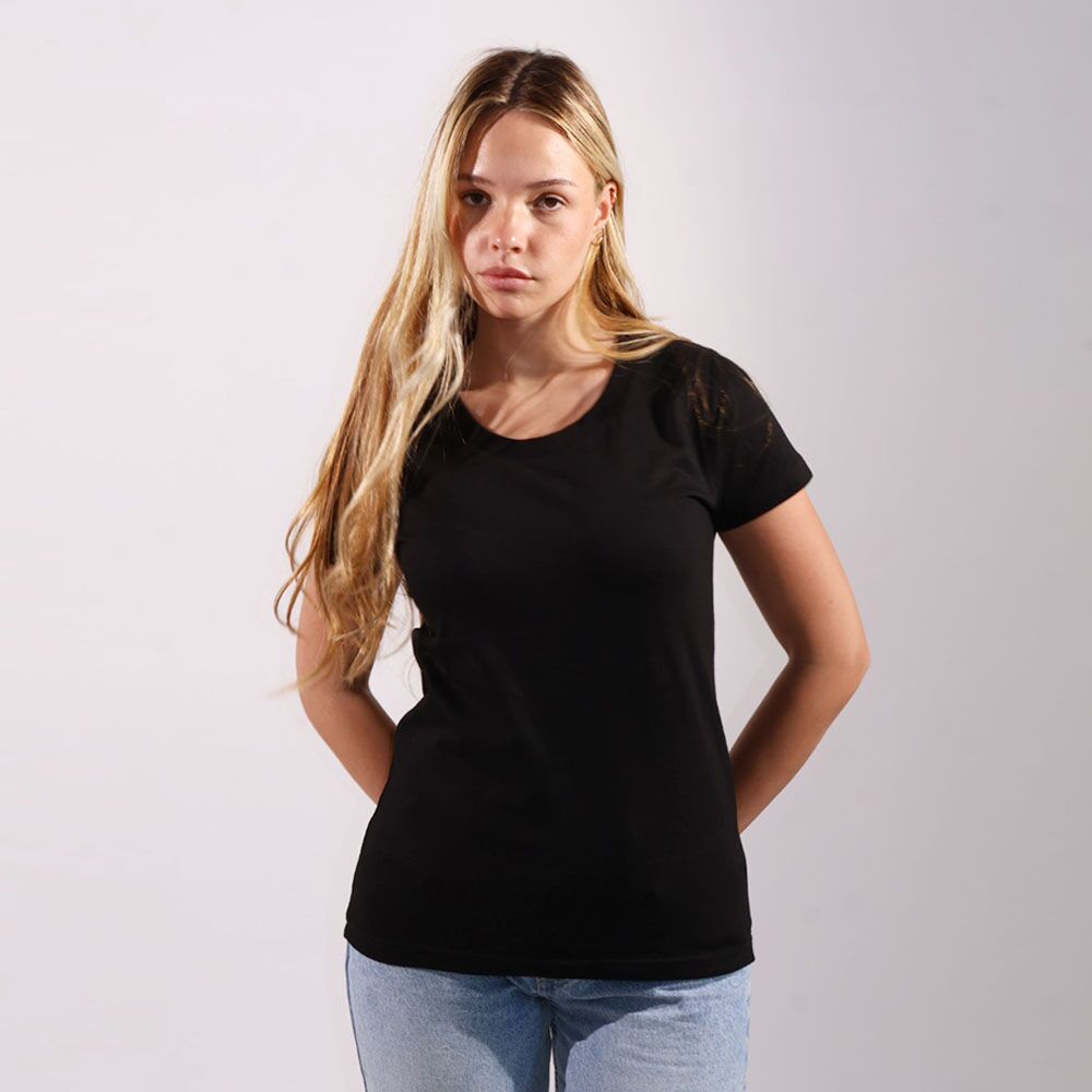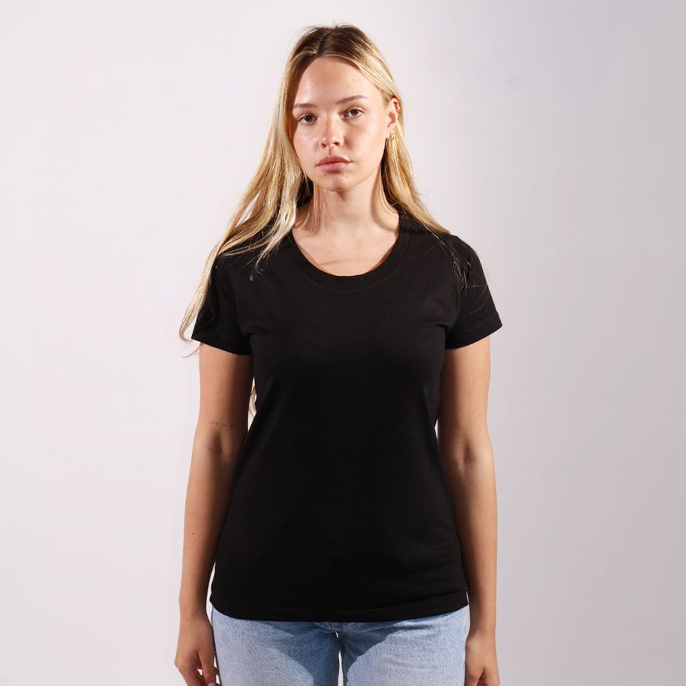 חולצת כותנה גזרת נשים צווארון עגול צבע שחור [מותג T Wear]