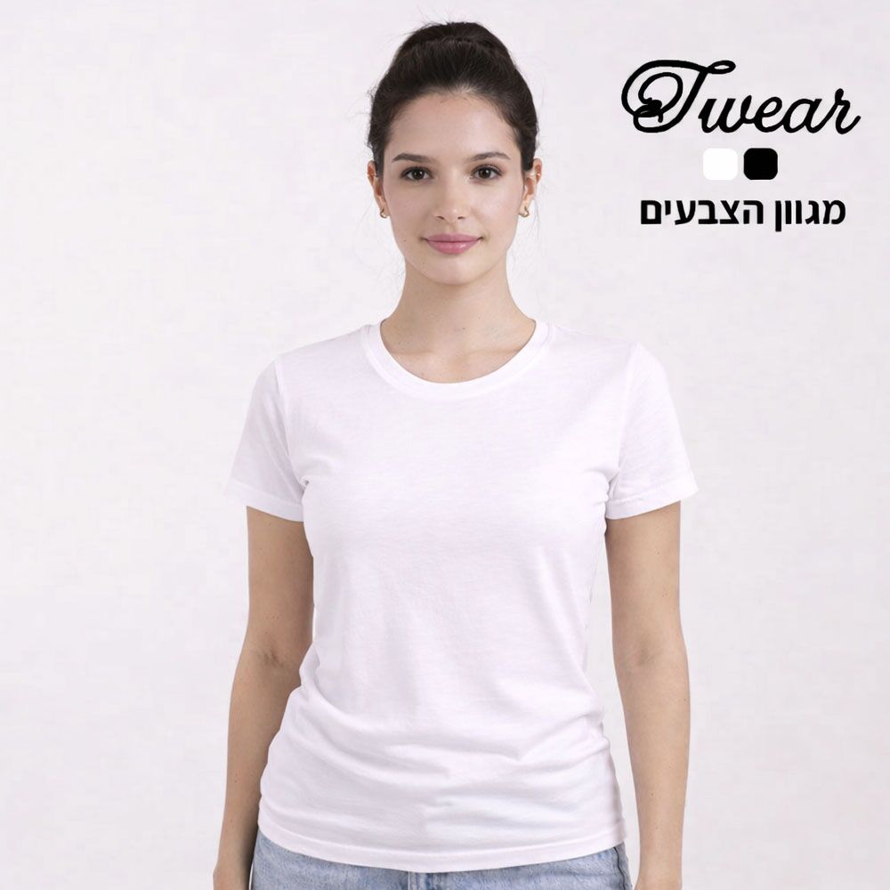 חולצת כותנה בגזרת נשים עגול איכותית T-Wear [הדפסה על שני צדדים]