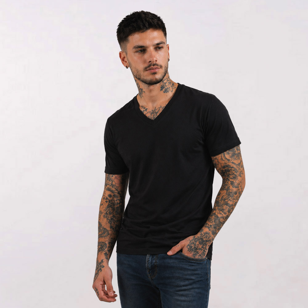 חולצת צווארון וי כותנה איכותית T-Wear [הדפסה על צד אחד]