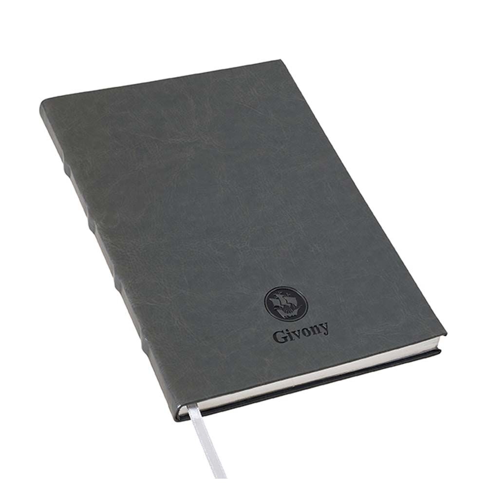 מחברת כריכת PU דמוי עור יוקרתית 96 דף עם שוליים כסופים +אפשרות לחריטה בלייזר [מותג Givony]