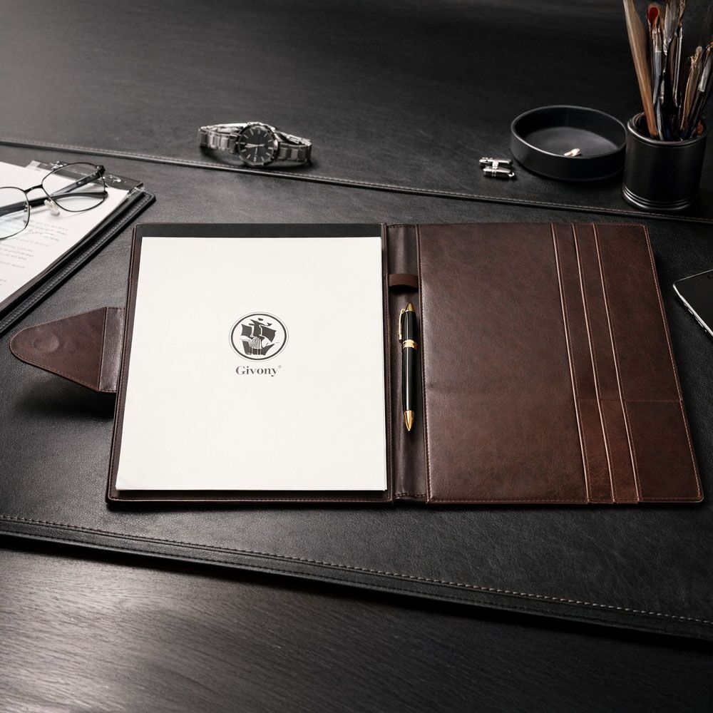 מכתבית גבעוני דמוי עור חום A4 סגירה מגנטית עם חריטה בלייזר [מותג Givony]