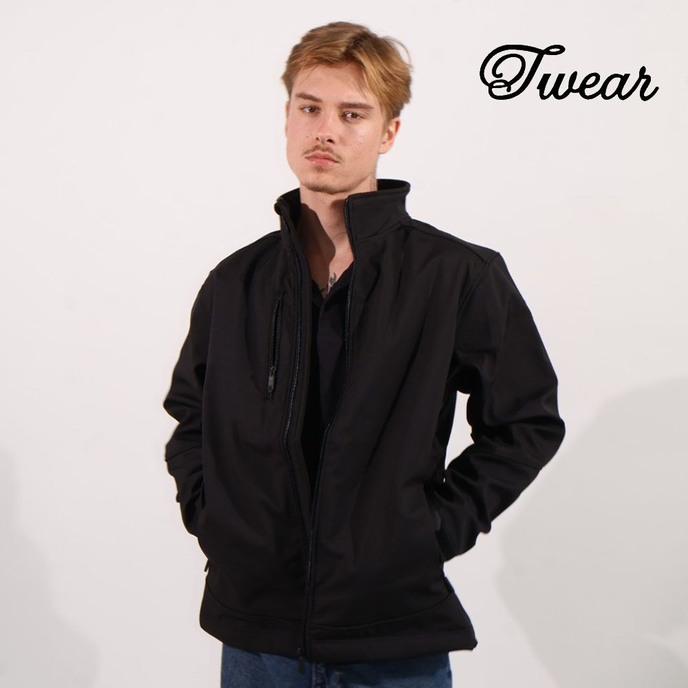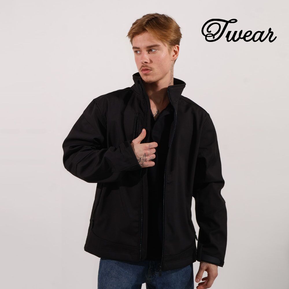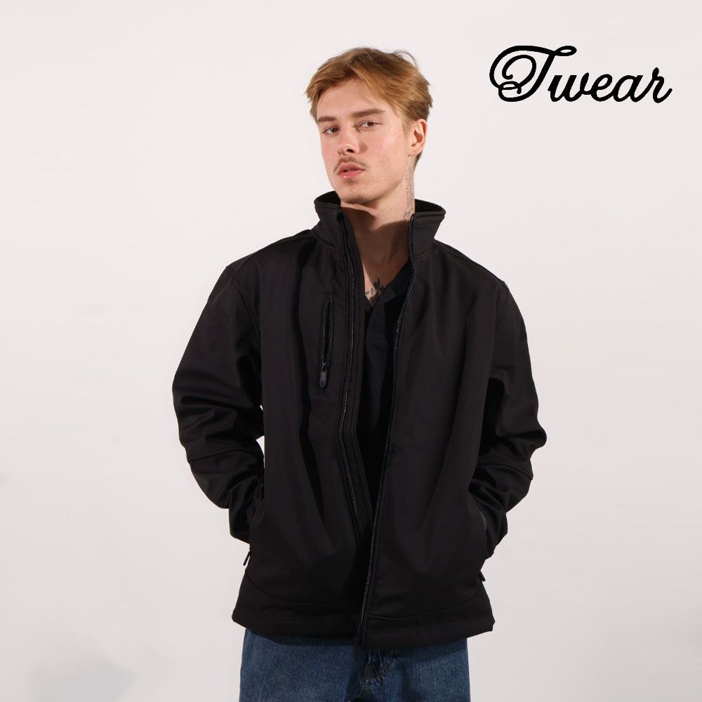 מעיל סופטשל שחור מותג T-Wear [הדפסה על צד אחד]