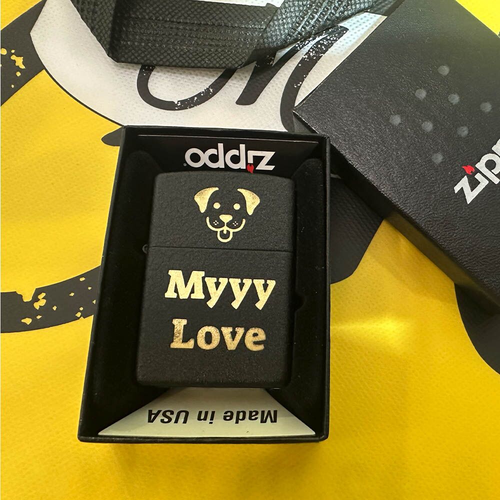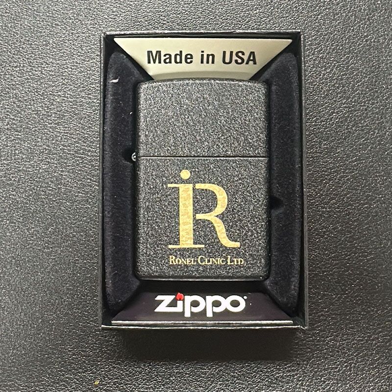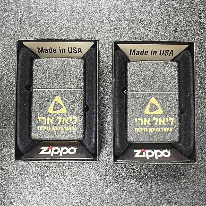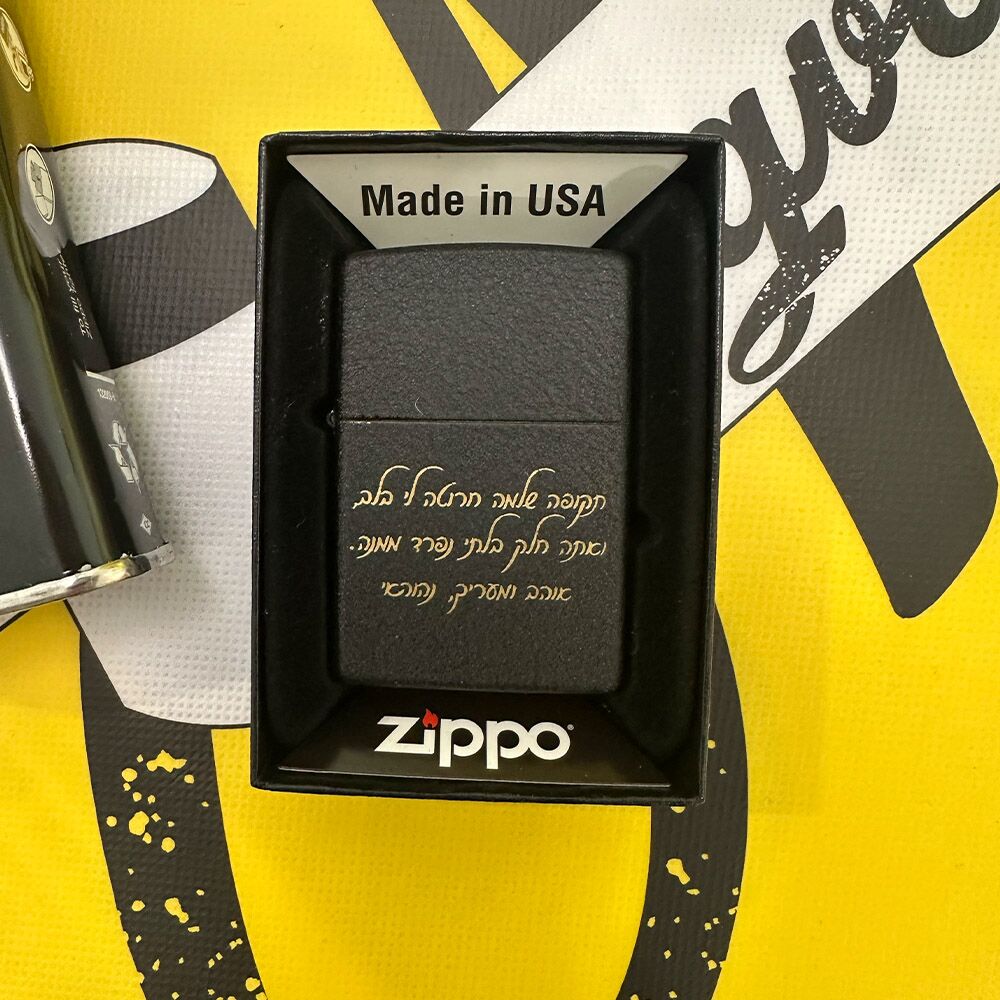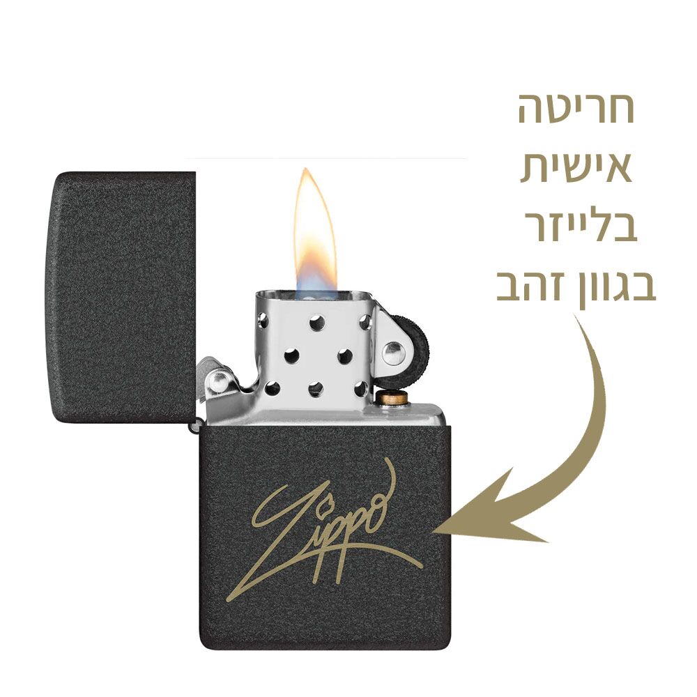 חריטה בזהב על מצית עם ציפוי מחוספס שחור מקורי של חברת Zippo – ניתן לחרוט טקסט / לוגו על צד אחד של המצית