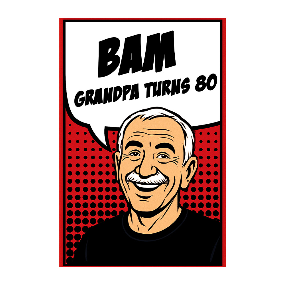 סט לאירוע משפחתי "קומיקס סבא״ – מעלים תמונה של סבא ואנו יוצרים ממנו קריקטורה בנוסף רושמים טקסט לבועת דיבור של סבא ומקבלים מאיתנו סקיצה לפני הדפסה!