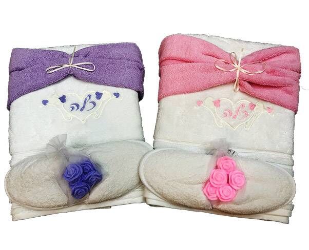 סט דלוקס מיוחד בשילוב מגבת חלוק עם רקמה אישית נעלי בית וסבונים ריחניים – כל כלה צריכה כזו ערכה מפנקת למקווה.