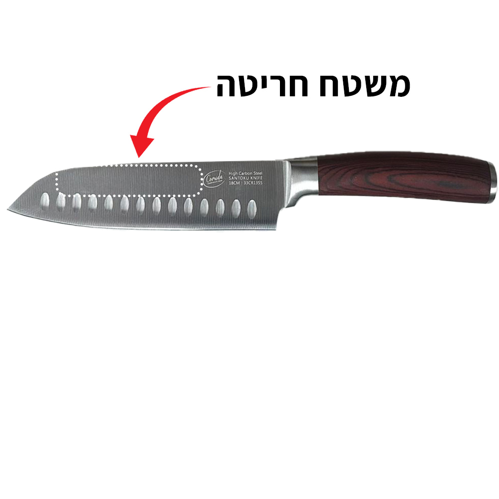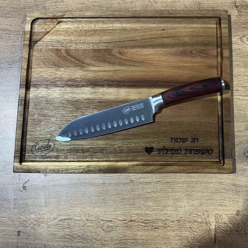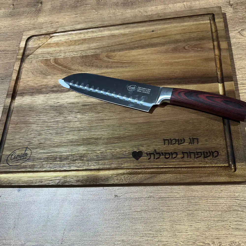 🔪 סט סכין סנטוקו מקצועית + לוח חיתוך עץ עם חריטה אישית