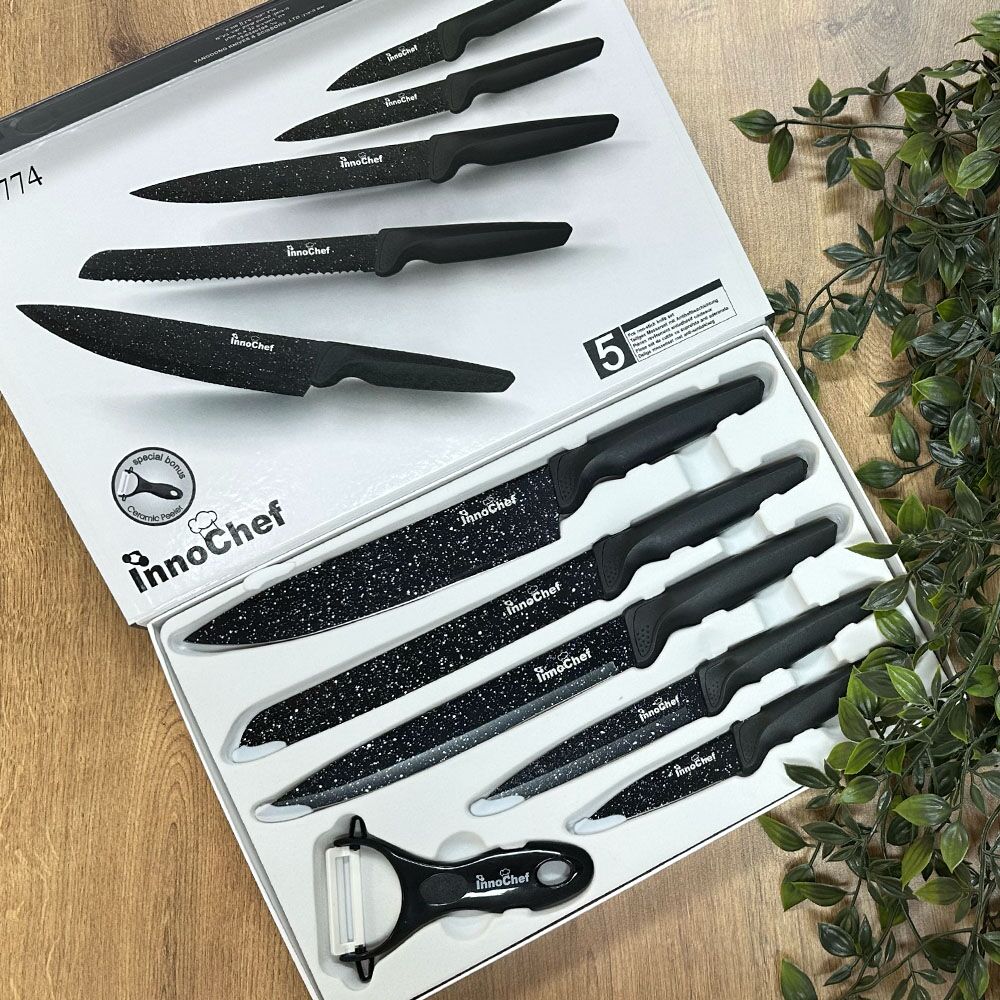 ✔ 5 סכינים חדים במיוחד בציפוי NONSTICK מצופה אבן שיש