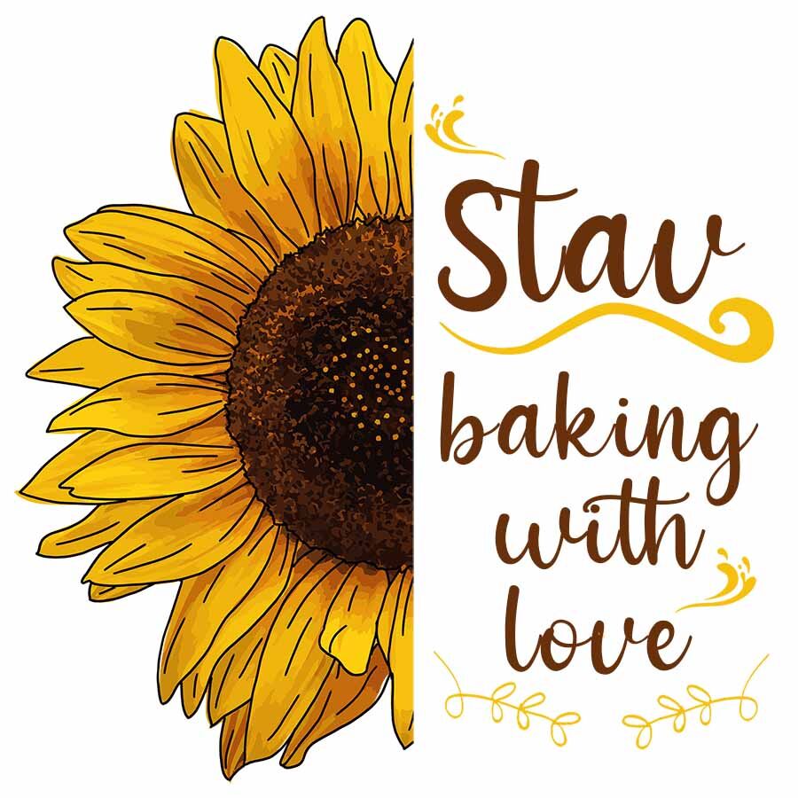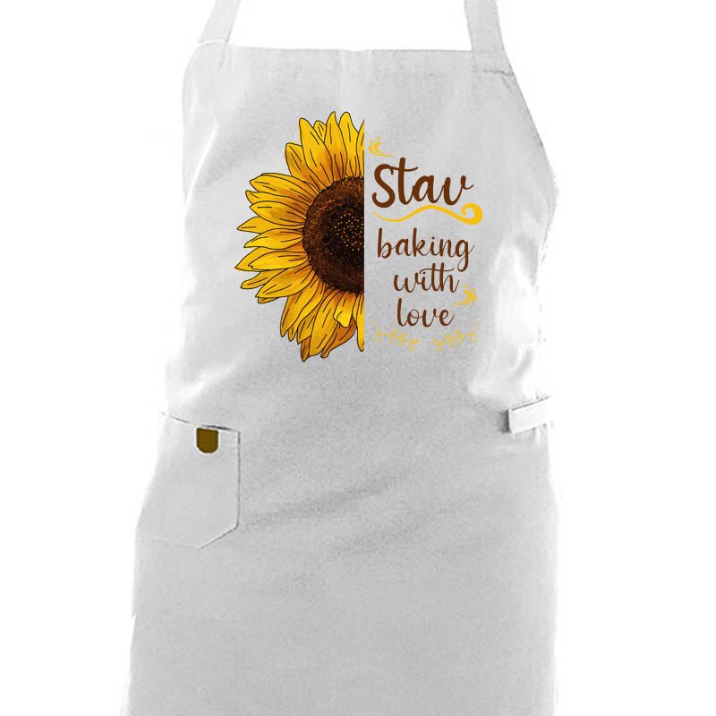 סינר With Love, סינר עם הדפסה של השם שלכם ומשפט שתחברו, עם הדפסה של שם ומשפט בצבע חום וחמניה. מומלץ על סינר לבן בלבד