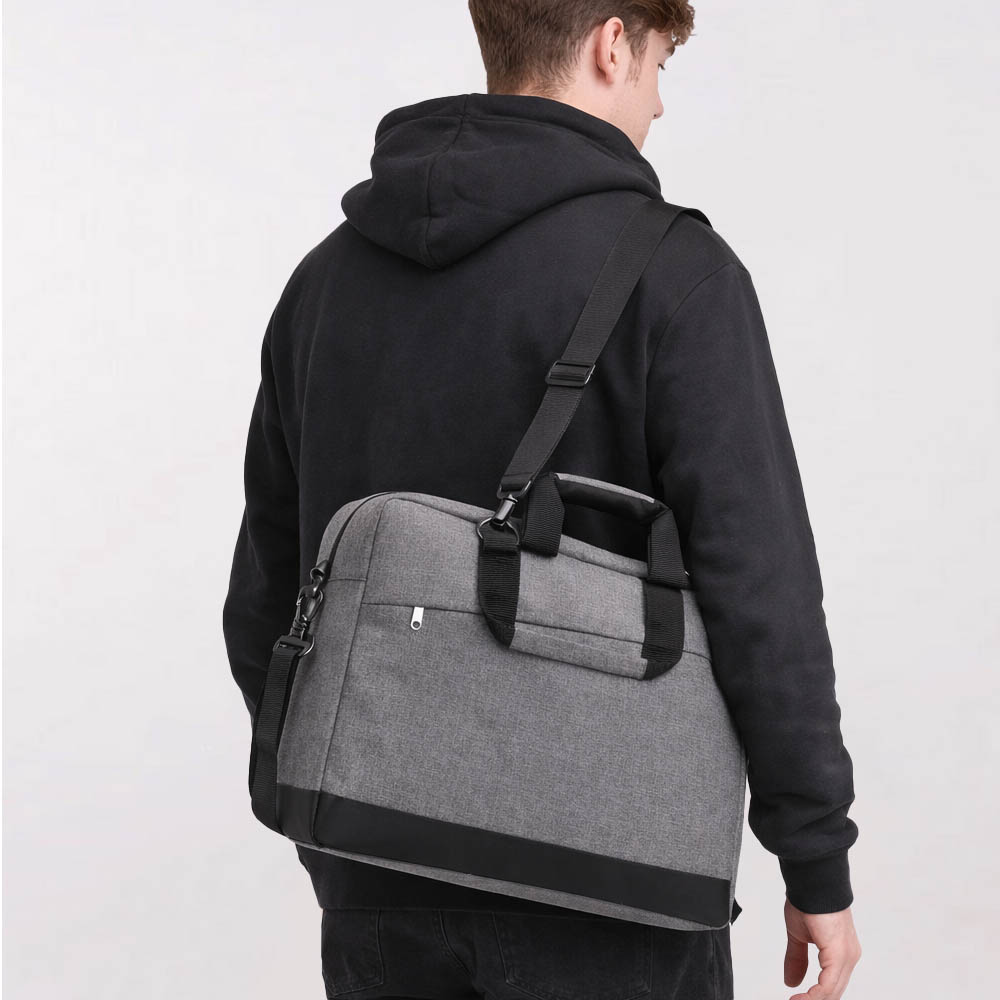 התיק עשוי בד איכותי מסוג 600D בשילוב מראה מלאנג’ מודרני, המעניק עמידות טובה ושומר על מראה מסודר לאורך זמן. הוא כולל שני תאים מרווחים ותא ייעודי ומרופד למחשב נייד, המספק הגנה טובה בזמן נשיאה. בנוסף, קיימים תאים פנימיים לארגון מסמכים ואביזרים, ותא חיצוני נגיש לשליפה מהירה.