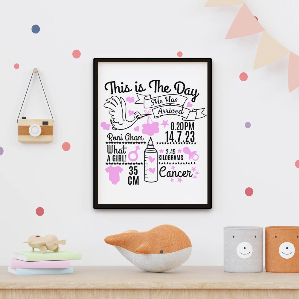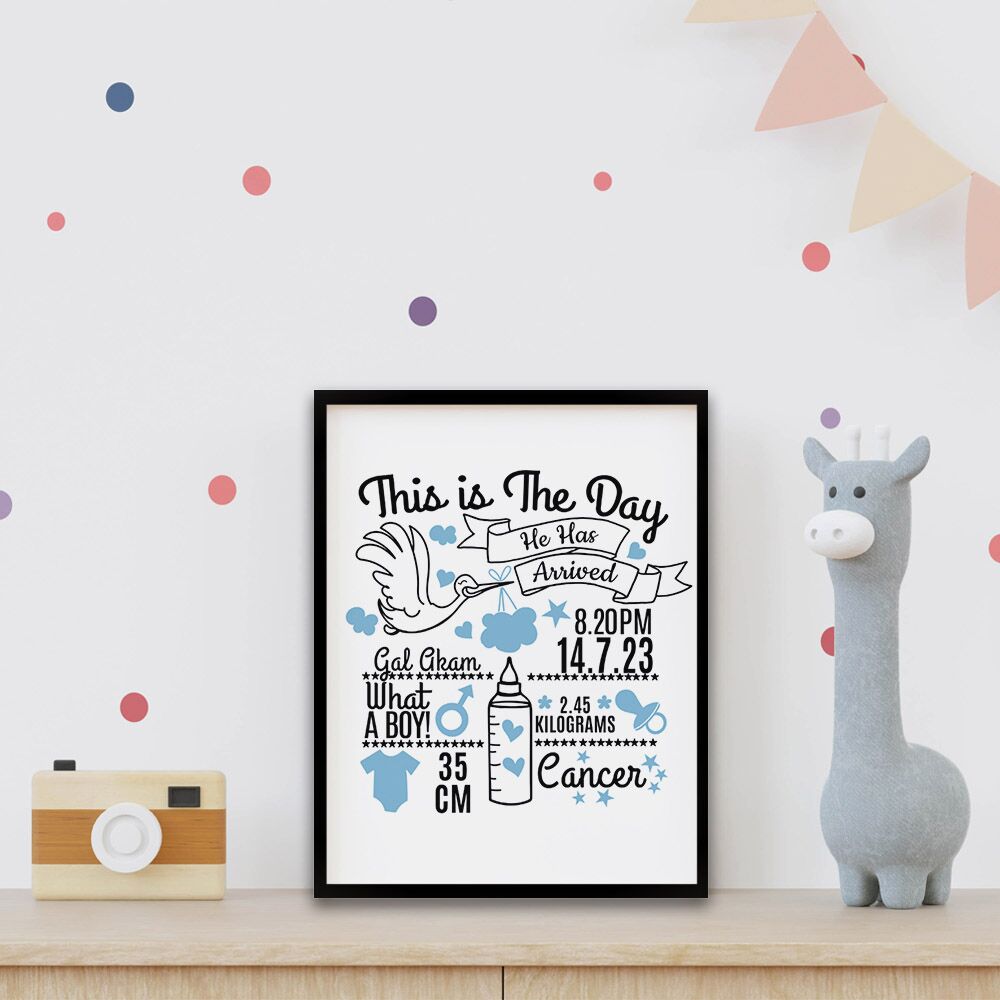 המסגרת היא תזכורת יפהפייה לרגע המרגש של לידתו של התינוק, והיא תישאר זיכרון לכל החיים.