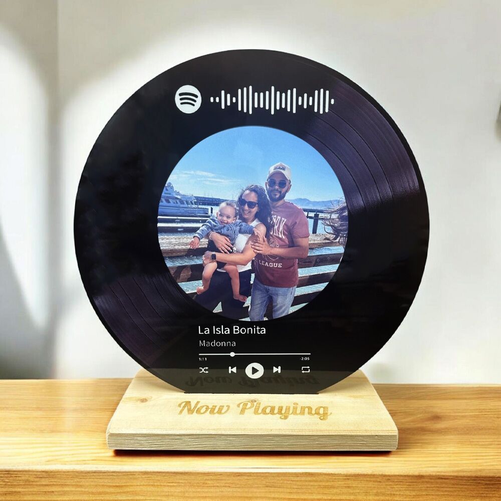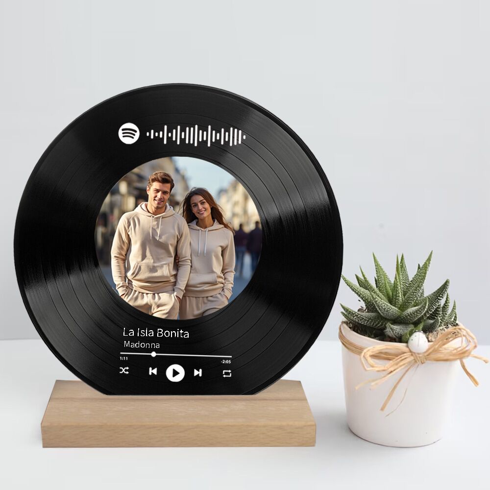 תקליט ויניל מעץ בהתאמה אישית עם השיר שלכם Spotify
