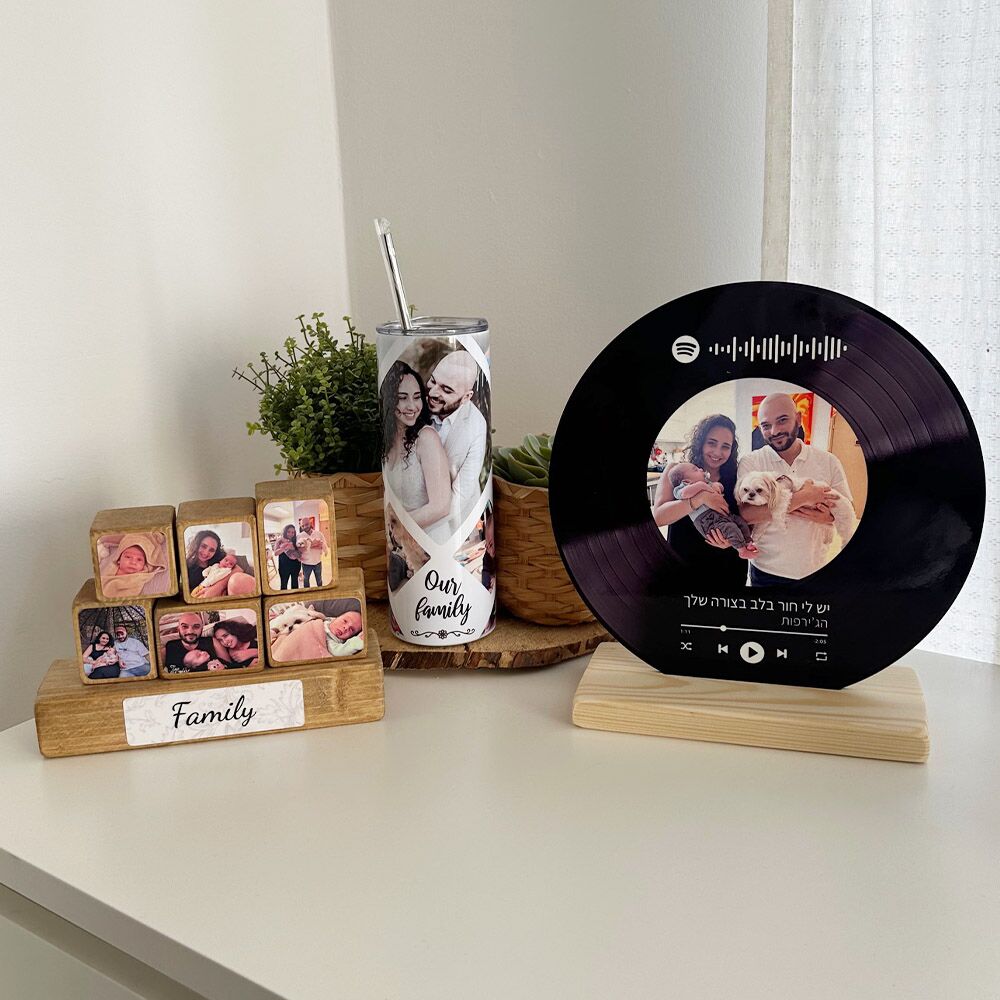 - מוצרים בעיצוב עצמי, מעמדי תמונה, מתנה לגבר, מתנה לאשה, קולאז תמונות