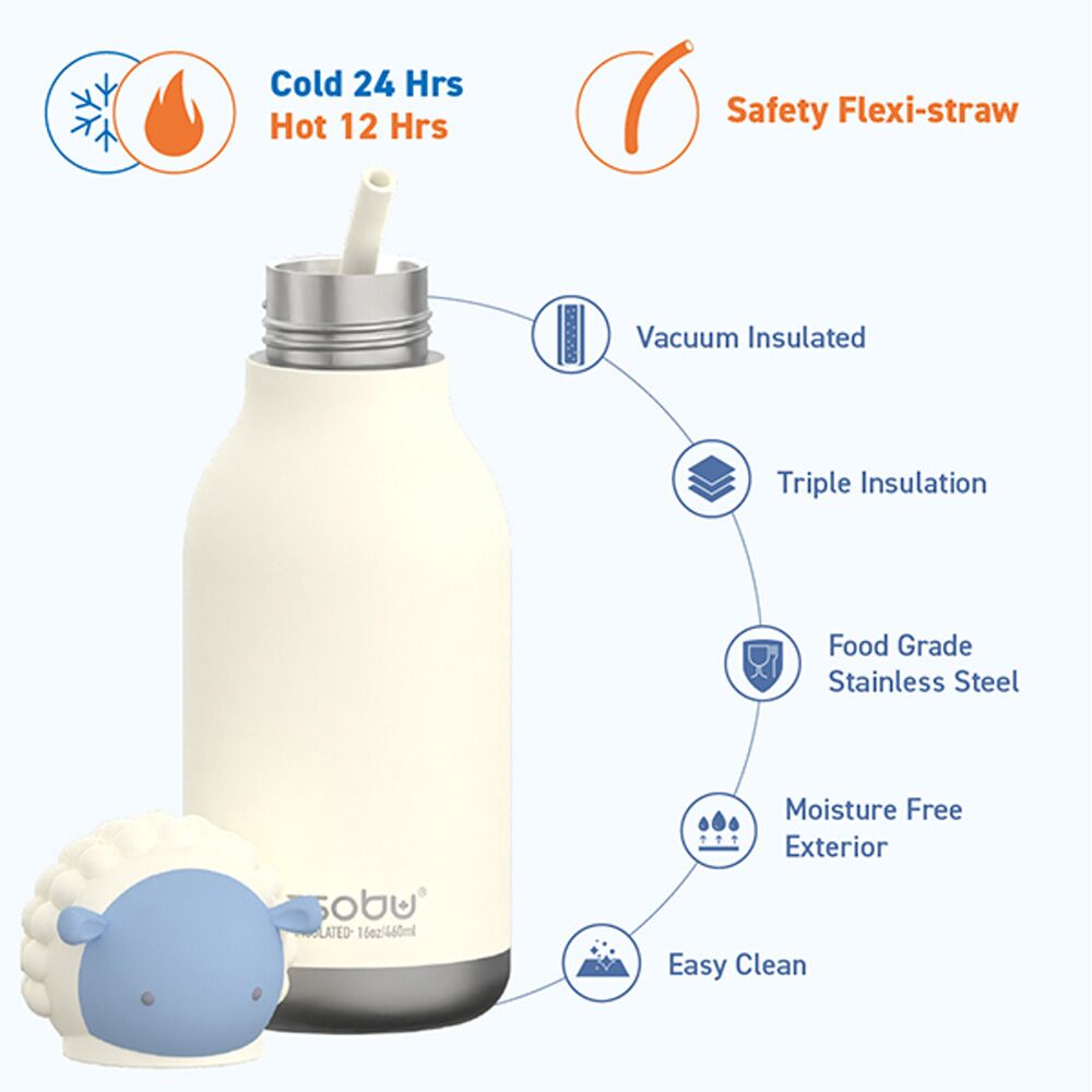 BESTIE בקבוק תרמי נירוסטה חם/קר 460 מ"ל עם קש מותג [ASOBU]