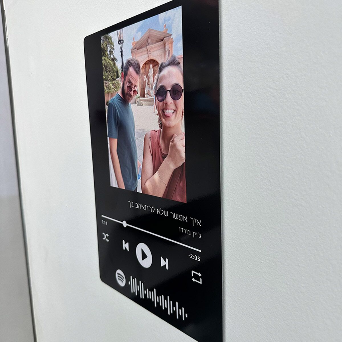 חדש בספוטיפיי וחדש אצלנו, שומרים את הברקוד של השיר שלכם עם בן/בת הזוג ומדפיסים אותו יחד עם תמונה שלכם, את הברקוד אפשר לסרוק ולשמוע דרך הנייד.