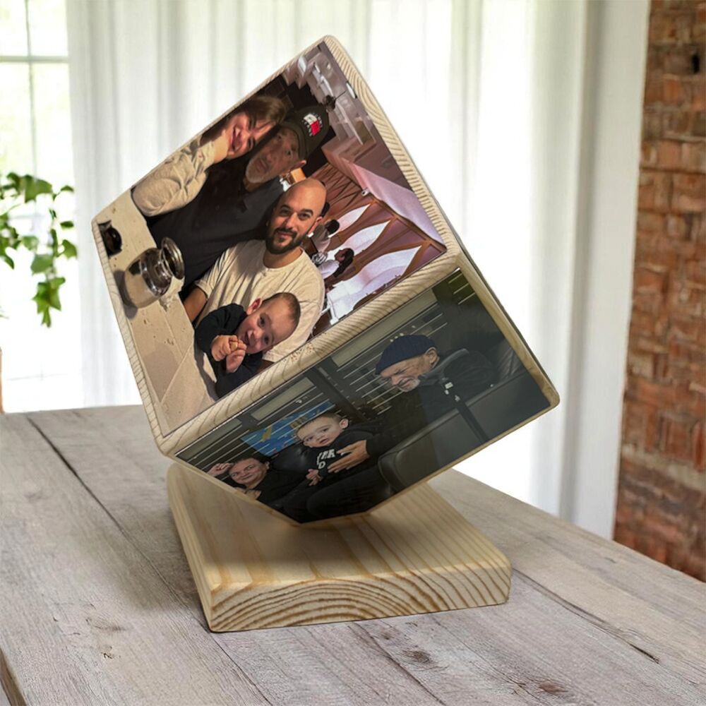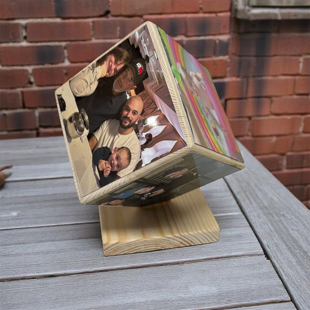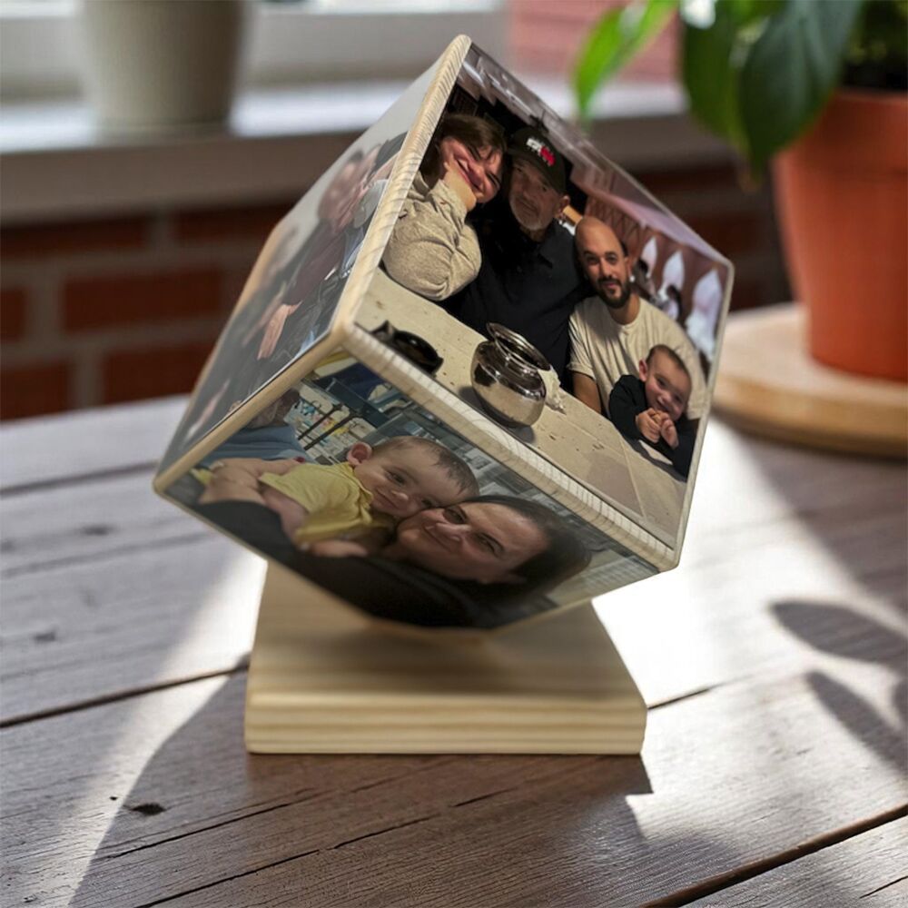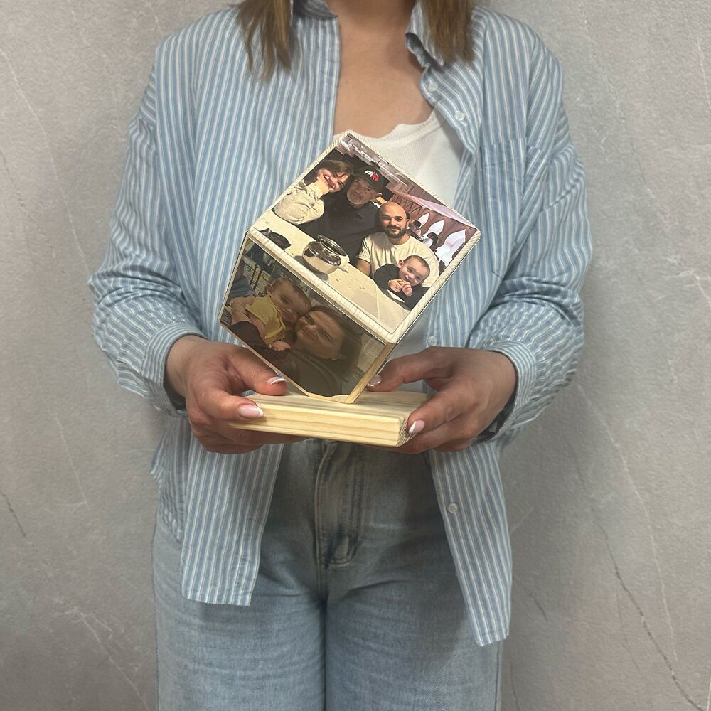 Photo Memory Cube – מעמד קוביית עץ עם הדפסת תמונות וחריטת טקסט